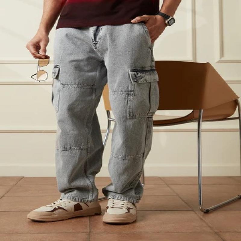 Functional meets fashionable in these grey slash denim cargos. Built for utility but designed to turn heads.
