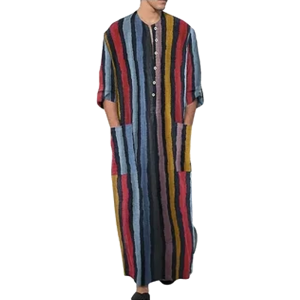 A classic and stylish kaftan for men, this garment is perfect for casual and relaxed occasions. Made from breathable cotton, the striped pattern adds a touch of sophistication.